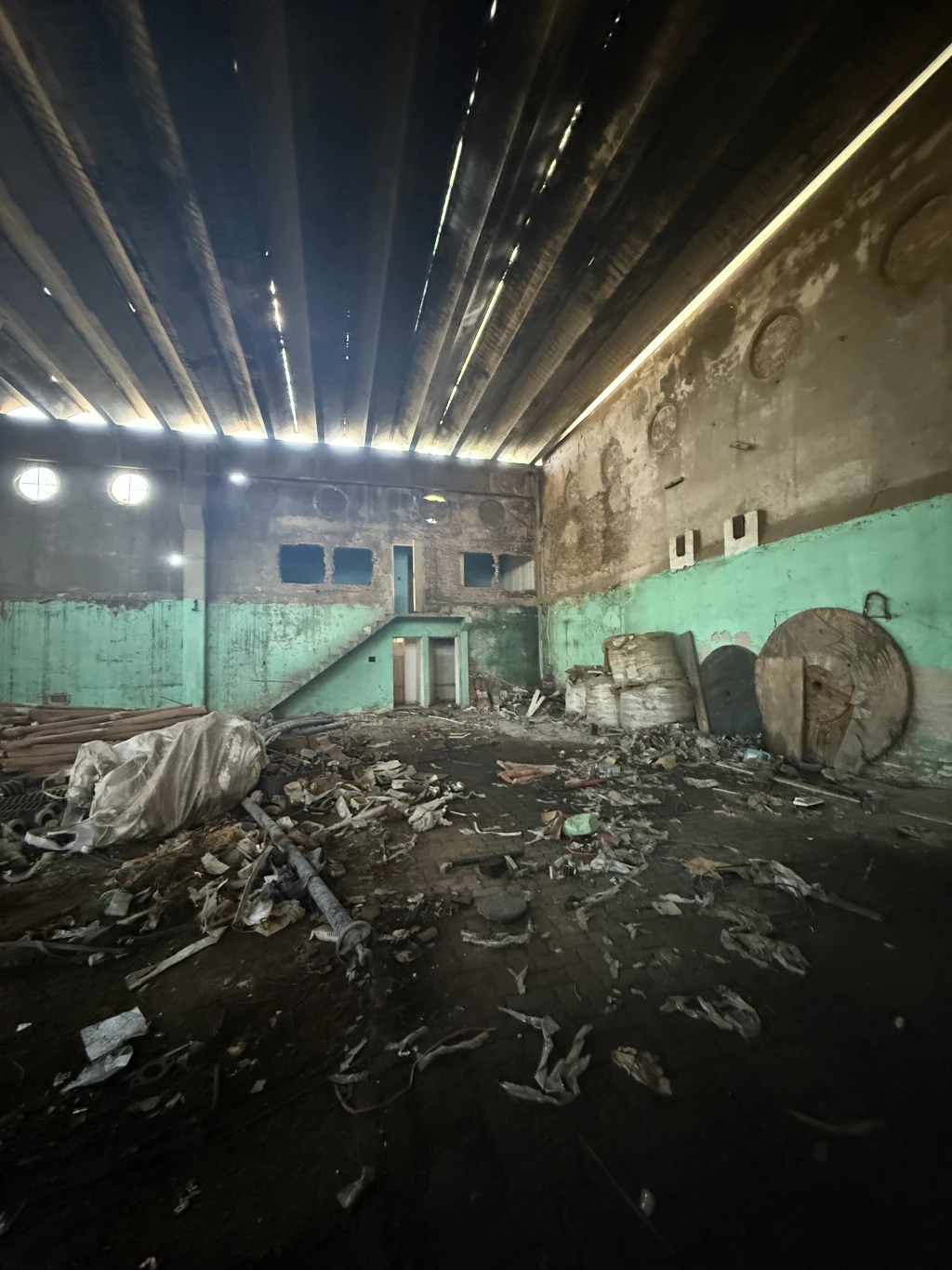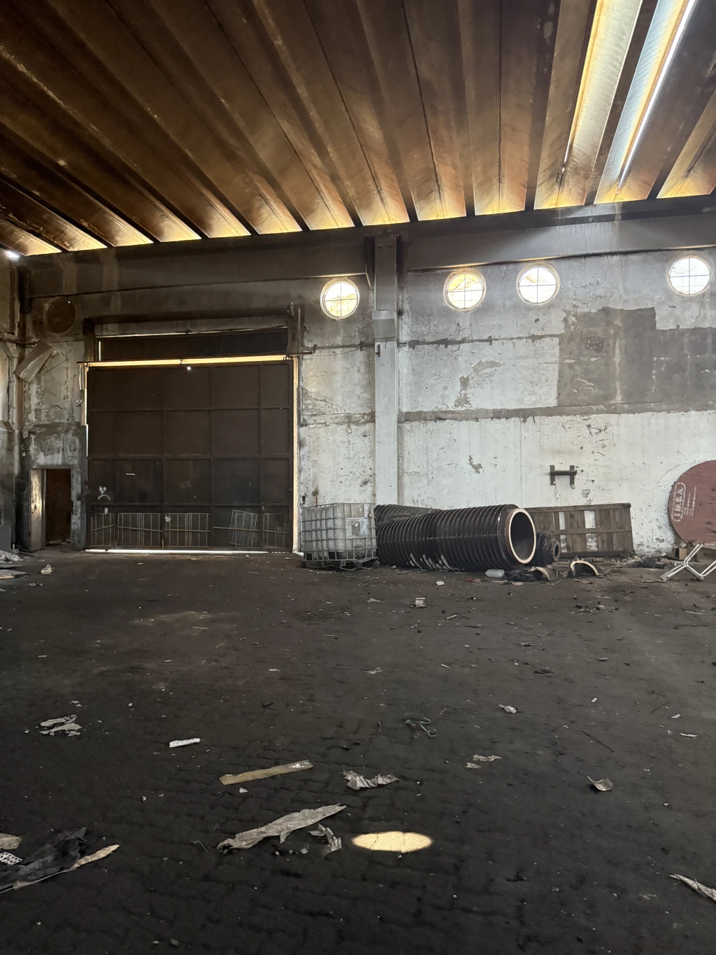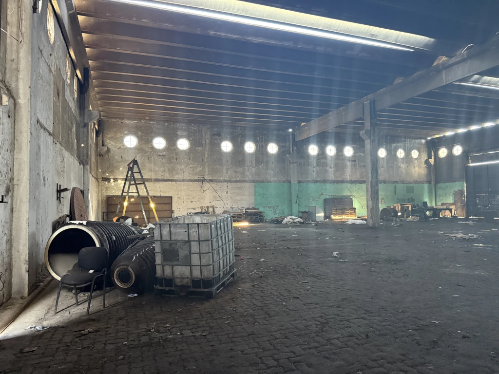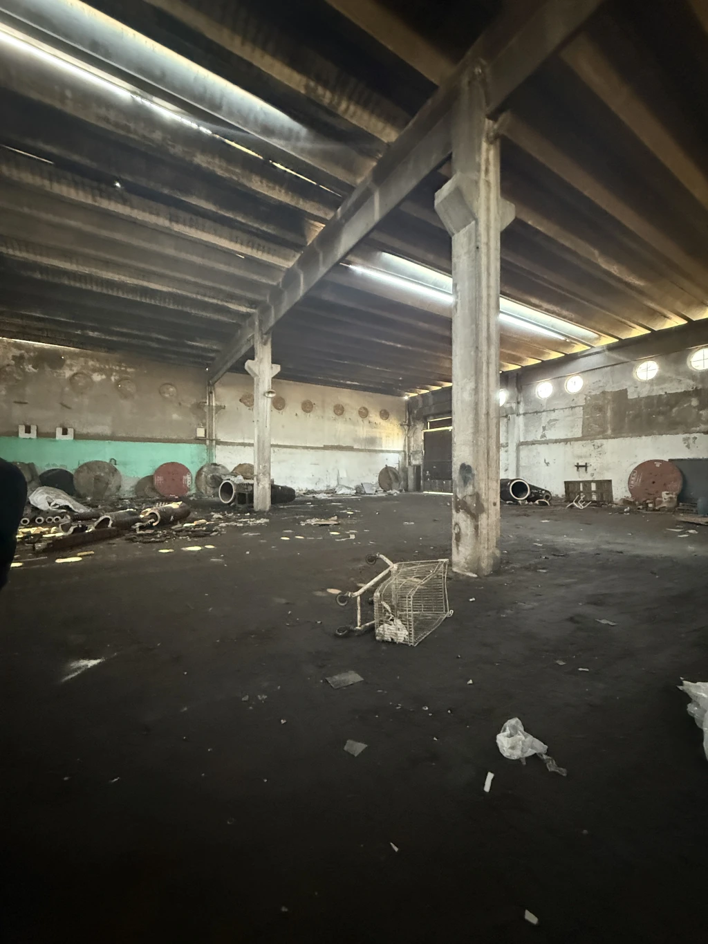 Cuenta con techo canalón de fibrocemento con 7mts de altura, amplio portón de 4,50x6mts y 2200m² de espacio libre con salida a la otra calle.